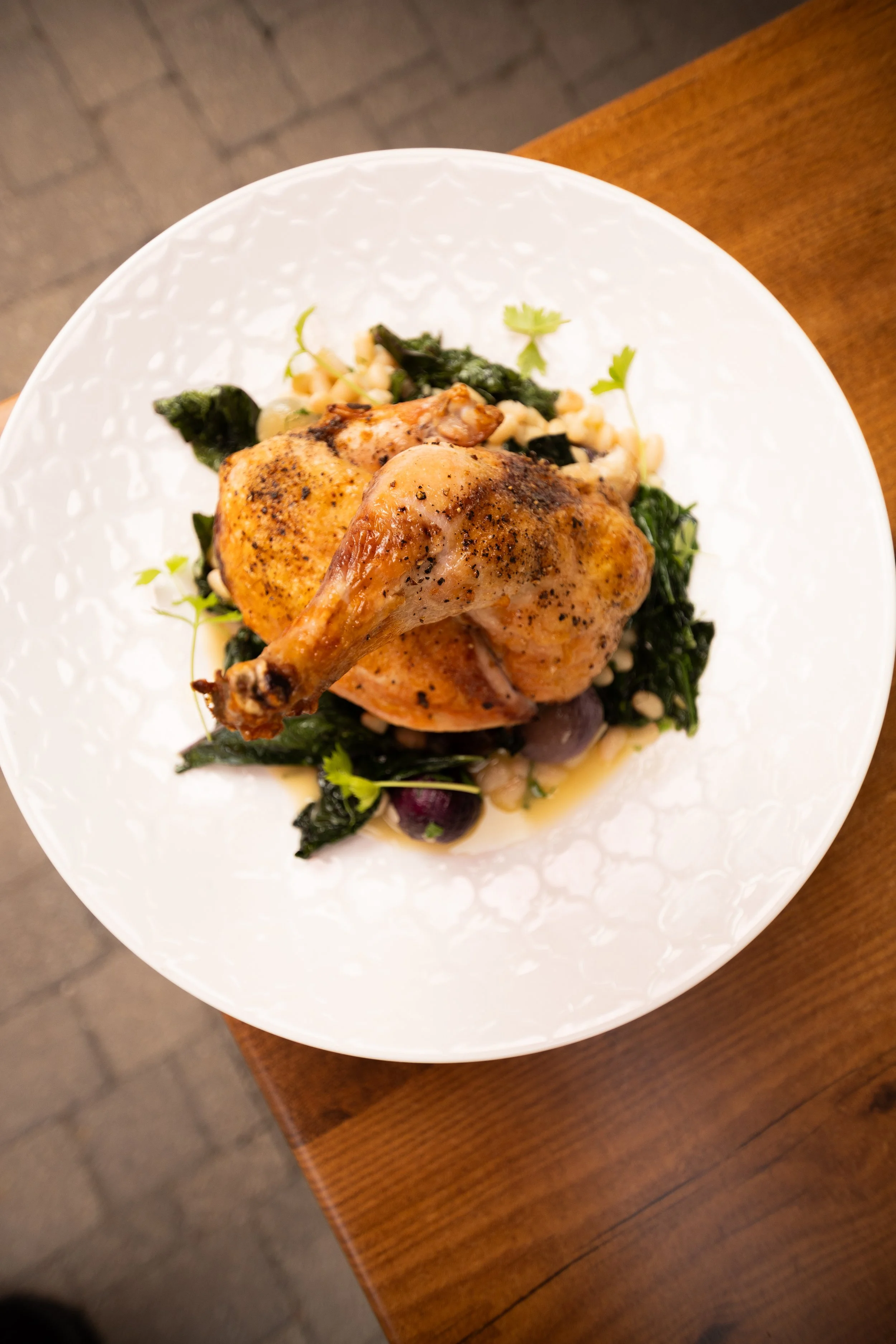 ![]()  Pollo al LambruscoLambrusco-marinated ½ chicken, served with white beans, kale, spring onion.