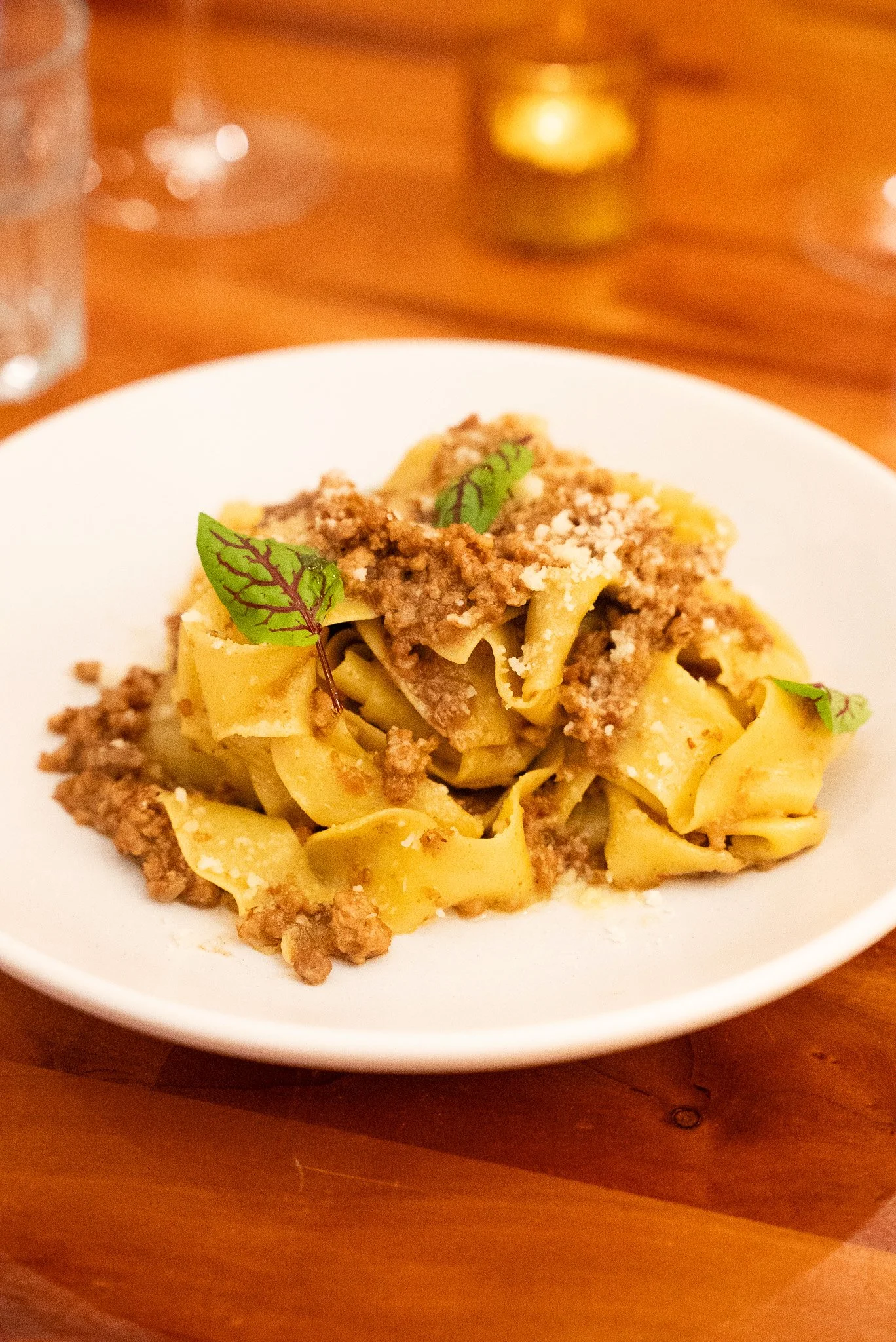 House-made mafaldine with braised rabbit ragù, white wine, garlic & fresh herbs