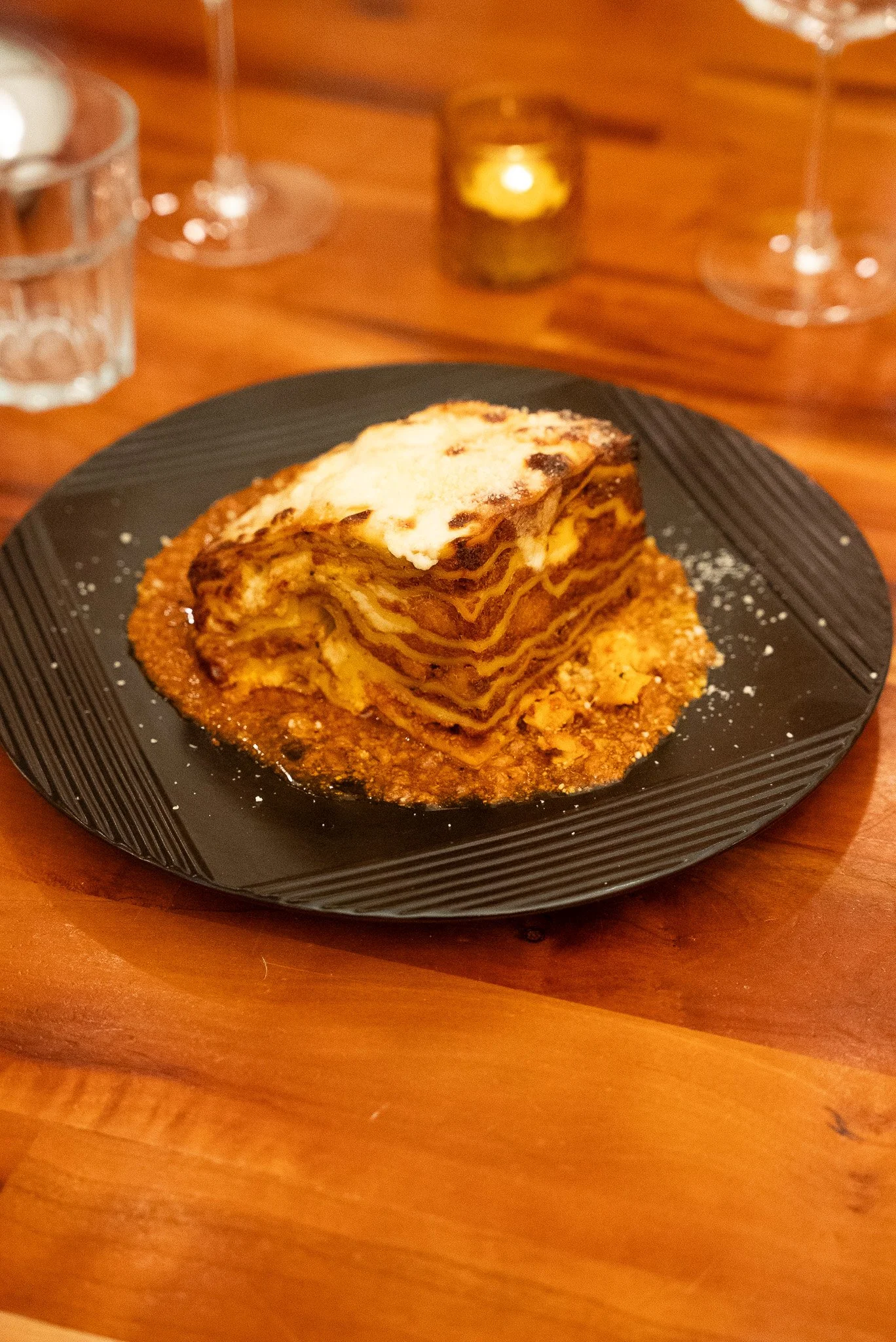 Layers of pasta with béchamel, veal ragù & Parmigiano Reggiano